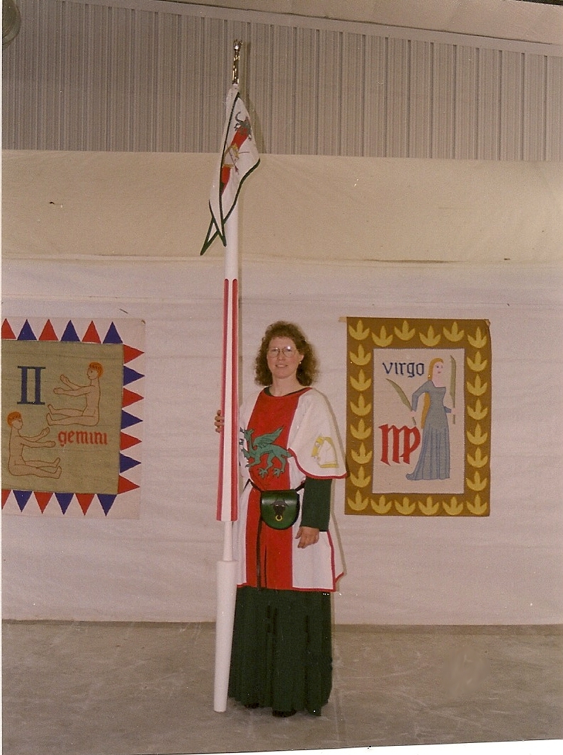 Many years ago one of the first events I rode in was the Middle Kingdom Coronation event of Finn and Tamara. It was a wonderful time full of contest and pageantry, and I had the good fortune to be chosen by Her Majesty as Their Equestrian Champion. I was overwhelmed as I was called up to Court to receive the honor and the tolken, an eight foot white lance. Being new at all of this, I thought it only polite to offer my service to The Crown (in court, in front of witnesses!) Their reply was to set me a task to compile a photo album so all could see what the equestrians do.