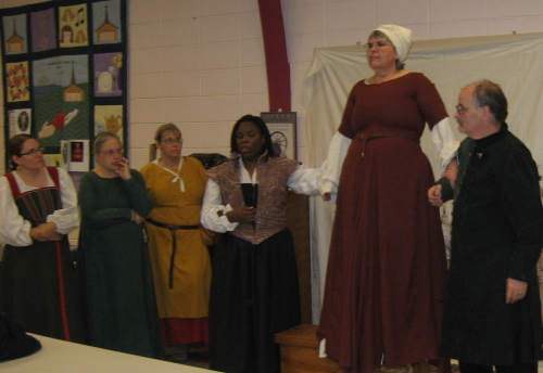 A group of geekie sewers got together to create complete medieval outfits one sleepless night. There was lots of loose threads, petting of fabric, hysterical laughter, and blank stares by the following evening. After a good month's rest, looking back I guess it was fun. It was certainly a learning experience. And we were very well fed. And some cool outfits were made